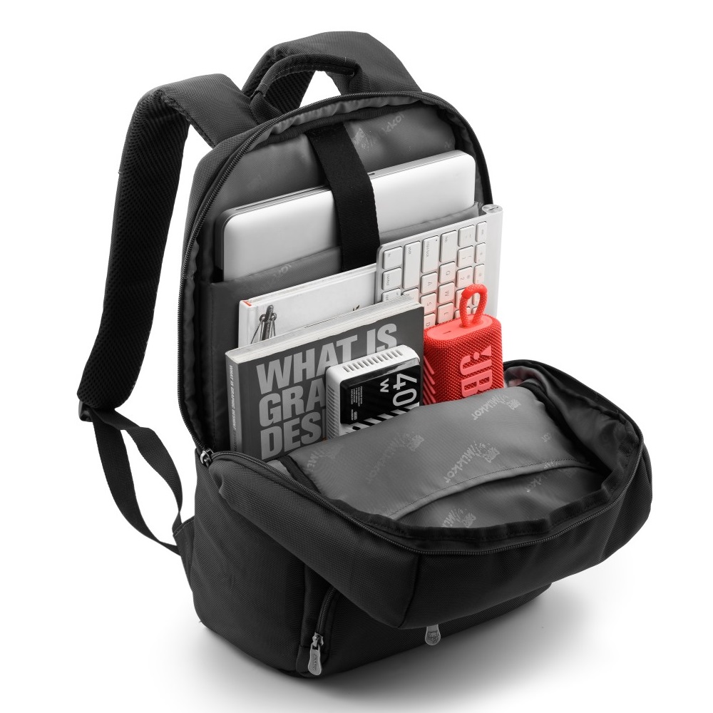- Ngăn chính rộng rãi đủ để mang theo tài liệu văn phòng, sách vở và đồ dùng hằng ngày. Ngăn để laptop 15.6 inch có lớp lót giúp bảo vệ thiết bị tránh va đập.