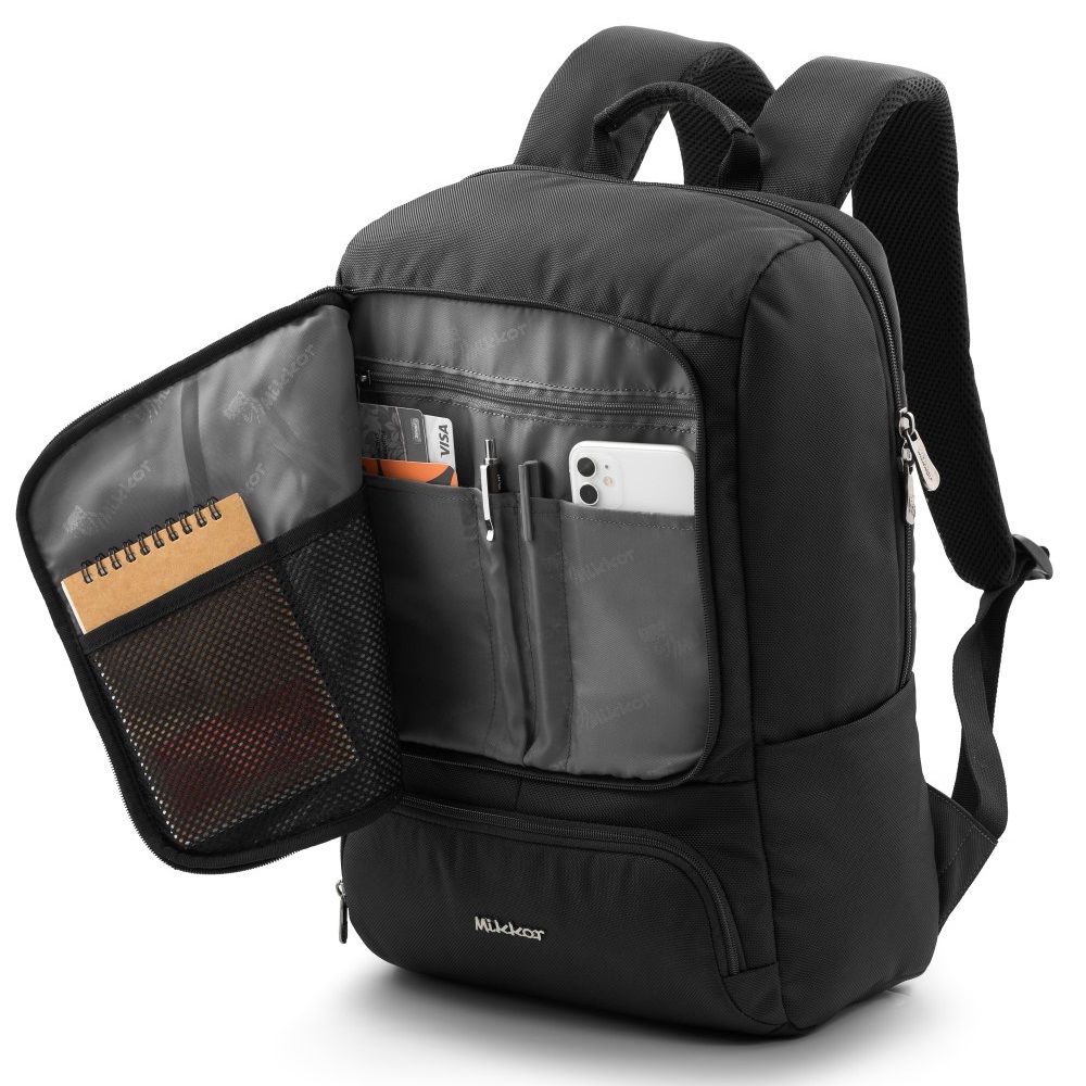 - Balo laptop Mikkor The Calvin thiết kế gồm 2 ngăn chính lớn và những ngăn nhỏ khác, đáp ứng nhu cầu sử dụng khi đi làm, đi học hoặc cho những chuyến công tác ngắn ngày.