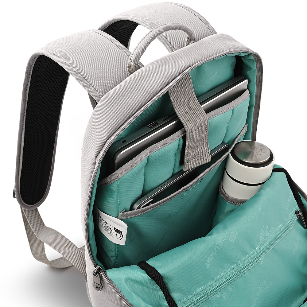 - Ngăn chính gồm ngăn chống sốc phù hợp cho các dòng laptop 15 inch, ngăn để Ipad và ngăn dây kéo nhỏ phía trước để các vật dụng như bóp ví, điện thoại,…không gian còn lại để sách vở hoặc tài liệu cần thiết cho một ngày làm việc của bạn. Ngăn bình nước được tích hợp bên trong, thuận tiện hơn trong quá trình di chuyển.