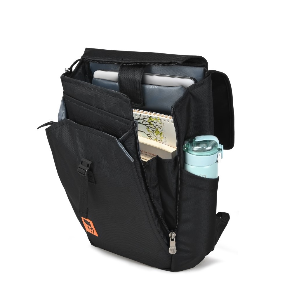 - Ngăn chính khá rộng bên trong có ngăn laptop 14 inch với lót chống sốc, 1 ngăn để Ipad và 1 ngăn phụ có khóa kéo, ngoài ra một bên balo được thiết kế với miệng túi mở rộng kéo dài xuống mặt trước giúp tạo không gian balo rộng rãi, tiện lợi khi sắp xếp đồ đạc cần mang theo.