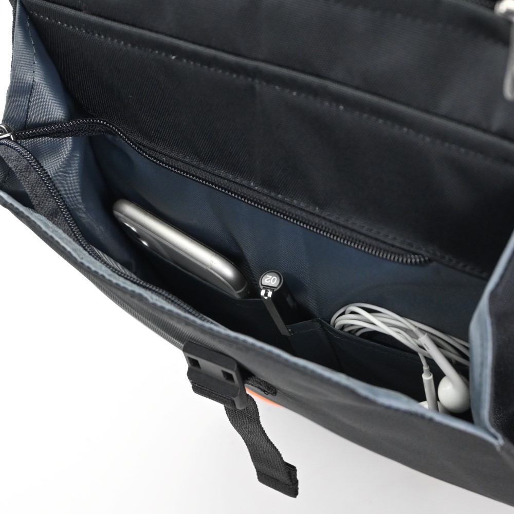- Ngăn mặt trước gồm 1 ngăn có khoá kéo và mở rộng để đựng bóp ví, điện thoại, dắt viết và danh thiếp...