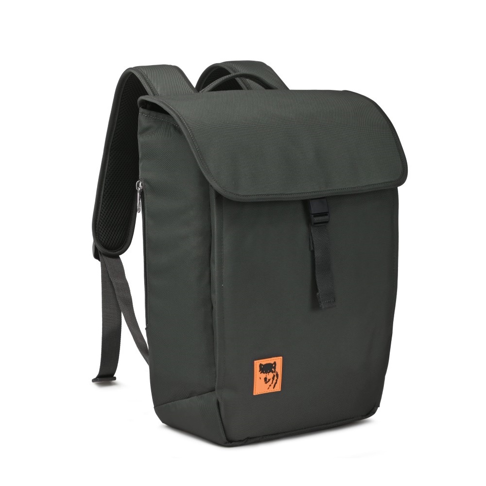 - Mặt trước balo đính logo PVC chú sói biểu tượng thương hiệu MIKKOR nổi bật.
