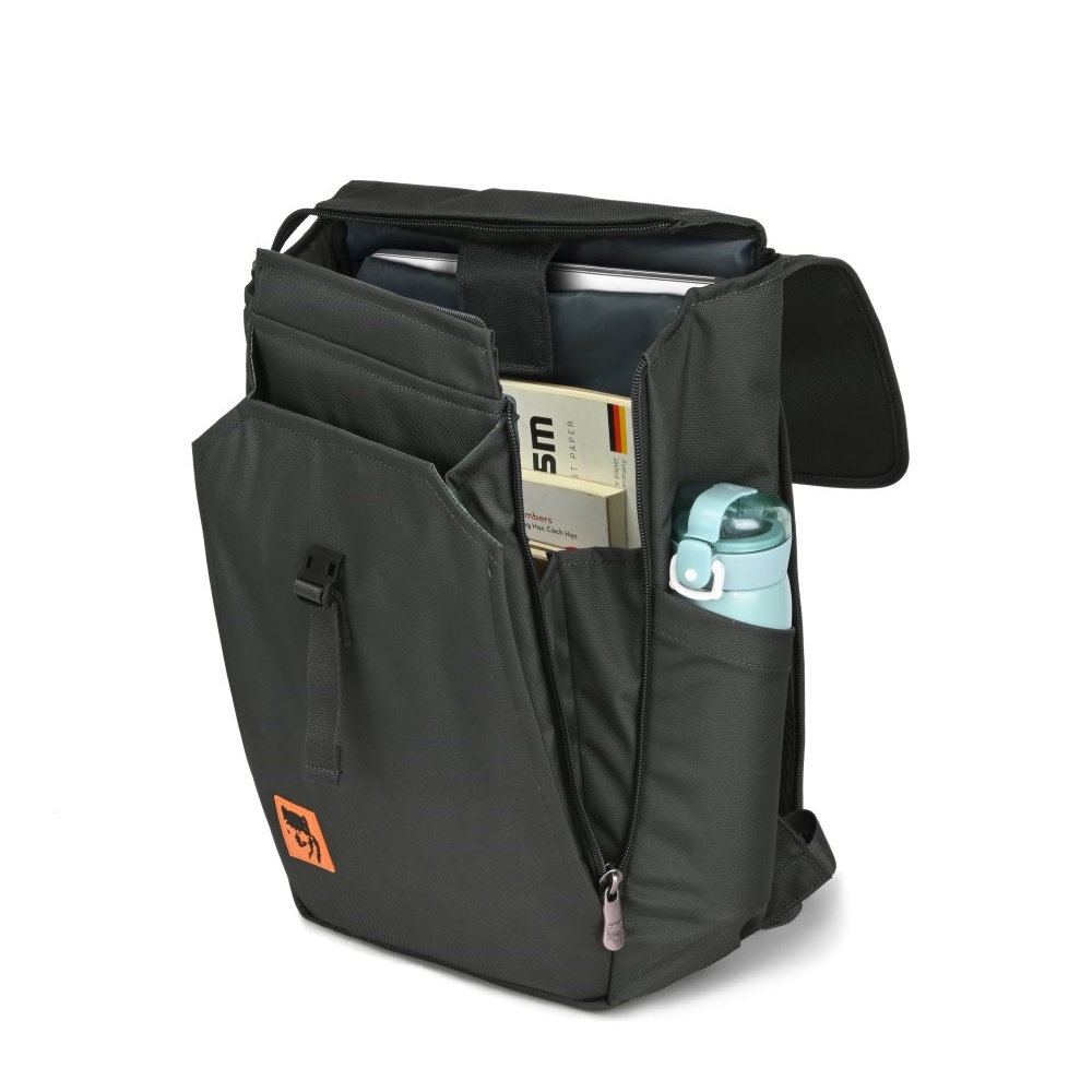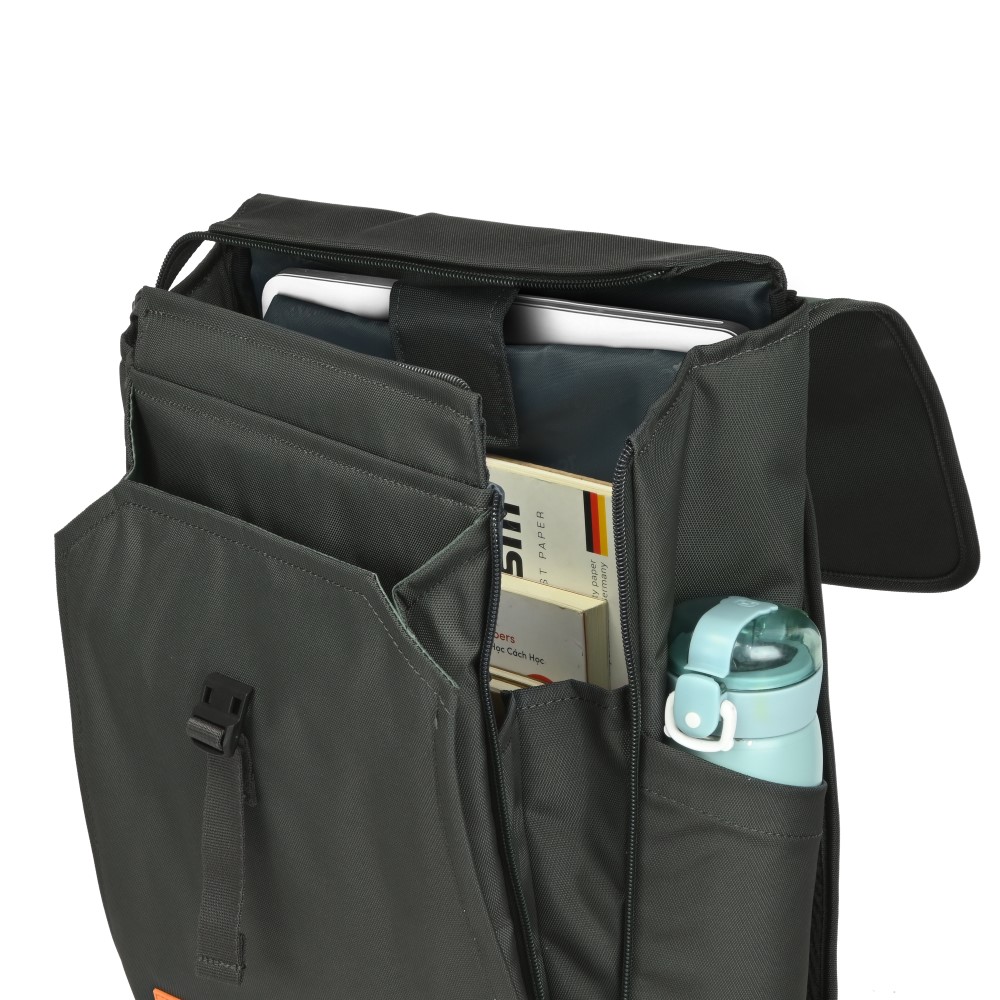 - Ngăn chính khá rộng bên trong có ngăn laptop 14 inch với lót chống sốc, 1 ngăn để Ipad và 1 ngăn phụ có khóa kéo, ngoài ra một bên balo được thiết kế với miệng túi mở rộng kéo dài xuống mặt trước giúp tạo không gian balo rộng rãi, tiện lợi khi sắp xếp đồ đạc cần mang theo.