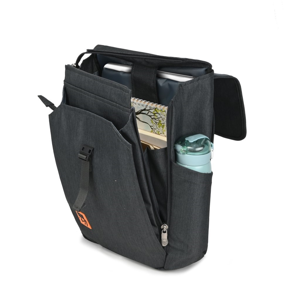 - Ngăn chính khá rộng bên trong có ngăn laptop 14 inch với lót chống sốc, 1 ngăn để Ipad và 1 ngăn phụ có khóa kéo, ngoài ra một bên balo được thiết kế với miệng túi mở rộng kéo dài xuống mặt trước giúp tạo không gian balo rộng rãi, tiện lợi khi sắp xếp đồ đạc cần mang theo.