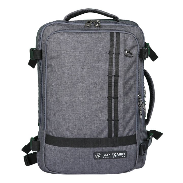 - Balo được chia làm 3 ngăn chính, ngăn laptop 15 inch, mặt trước in tên thương hiệu simplecarry.
