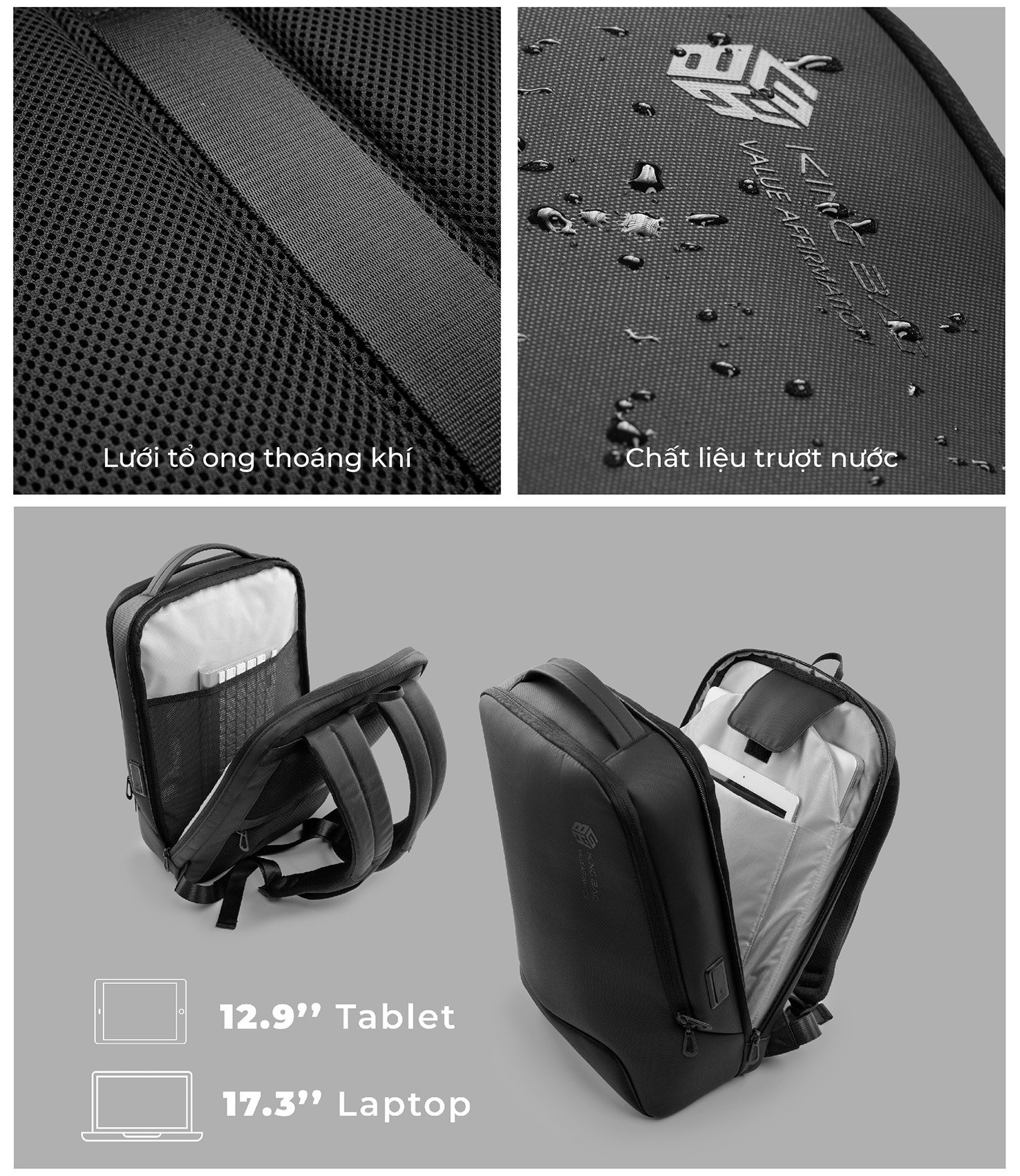 - Balo Kingbag Apollo gồm 1 ngăn chính rộng rãi có thể để được nhiều đồ, ngăn laptop 15.6 inch và ngăn máy tính bảng riêng biệt.