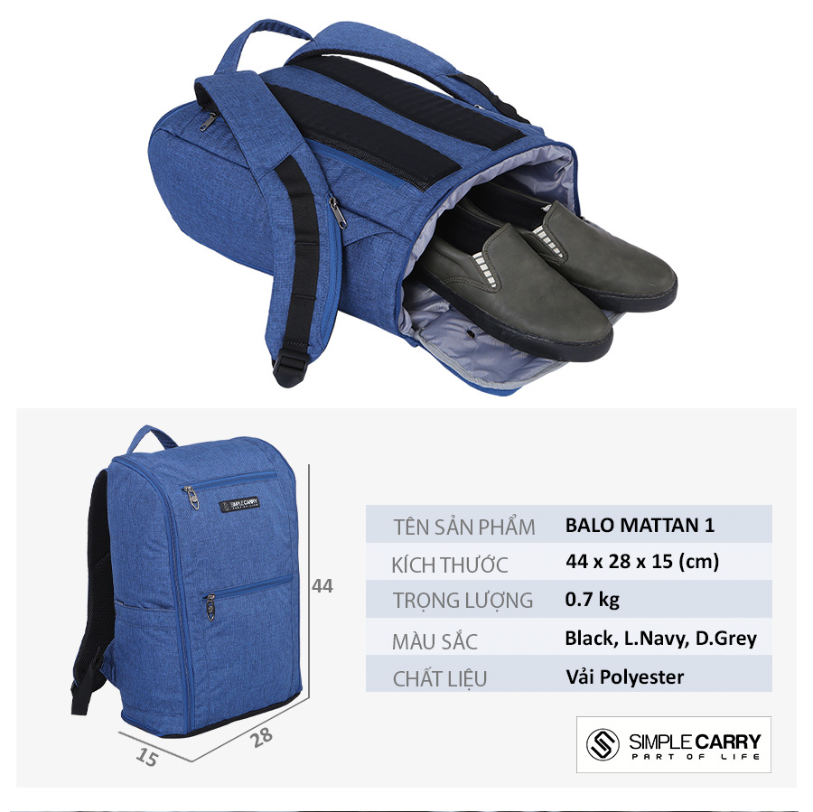 - Balo laptop Simplecarry Mattan 1 thiết kế độc đáo, lạ mắt phù hợp cho sinh viên, dân văn phòng mang đi học, đi làm hay đi công tác, du lịch...