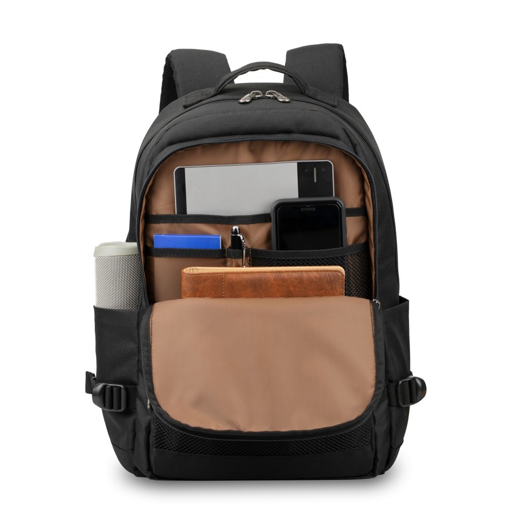 - Balo laptop Mikkor The Louie gồm 2 ngăn chính, 2 ngăn phụ phía trước và 2 ngăn đựng bình nước.
