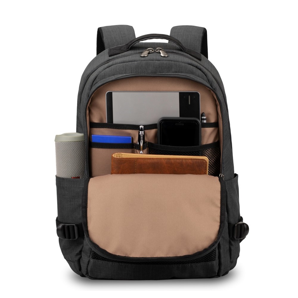 - Balo laptop Mikkor The Louie gồm 2 ngăn chính, 2 ngăn phụ phía trước và 2 ngăn đựng bình nước.