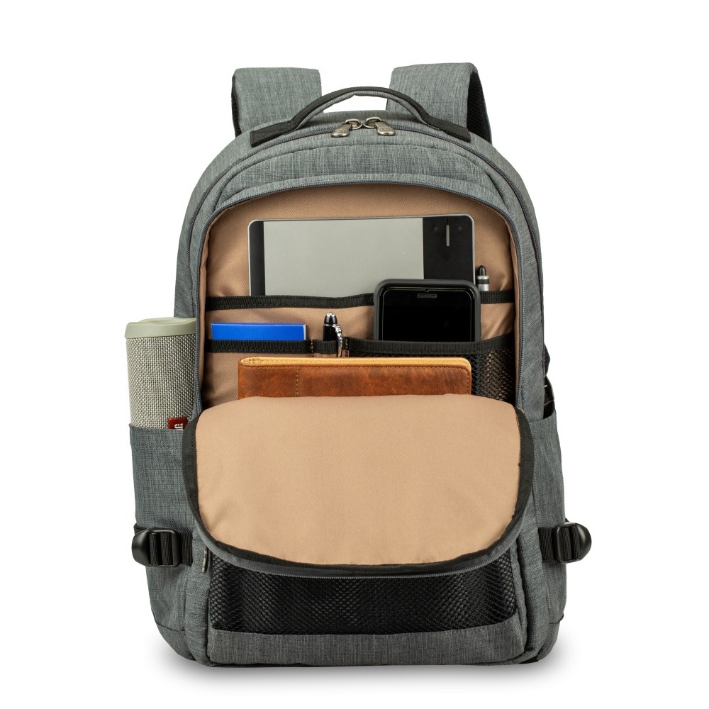 - Balo laptop Mikkor The Louie gồm 2 ngăn chính, 2 ngăn phụ phía trước và 2 ngăn đựng bình nước.