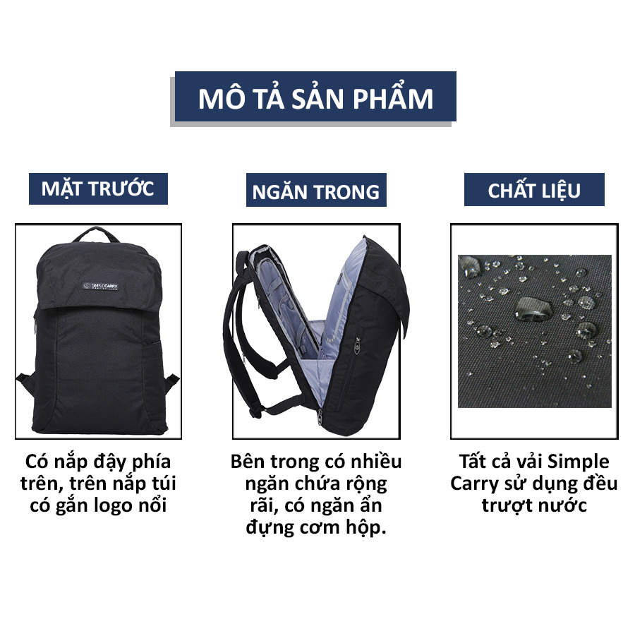 - Kích thước: 48 x 32 x 17 cm. - Cân nặng: 0.8 kg. - Tải trọng tối đa: 25 kg. - Chất liệu: Polyester trượt nước. - Balo Simplecarry Mattan 2 thiết kế độc đáo, lạ mắt phù hợp cho sinh viên, dân văn phòng mang đi học, đi làm hay đi công tác, du lịch... - Balo Simplecarry Mattan 2 gồm 2 ngăn chính, có thể để được laptop 15.6 inch. - Mặt trước có nắp đậy phía trên, trên nắp túi có gắn logo nổi. - Ngăn trong: Bên trong có nhiều ngăn chứa rộng rãi, phía dưới có ngăn để giày. - Bên...