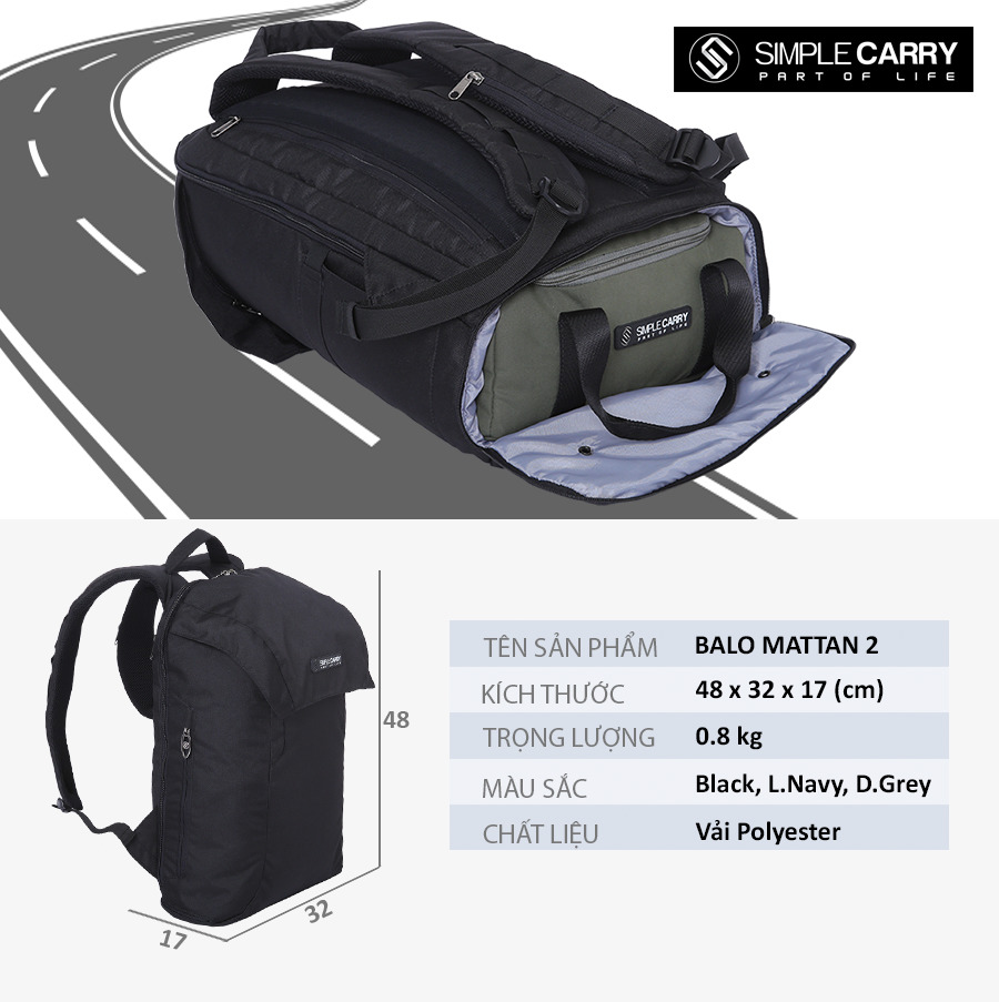 - Balo Simplecarry Mattan 2 thiết kế độc đáo, lạ mắt phù hợp cho sinh viên, dân văn phòng mang đi học, đi làm hay đi công tác, du lịch...