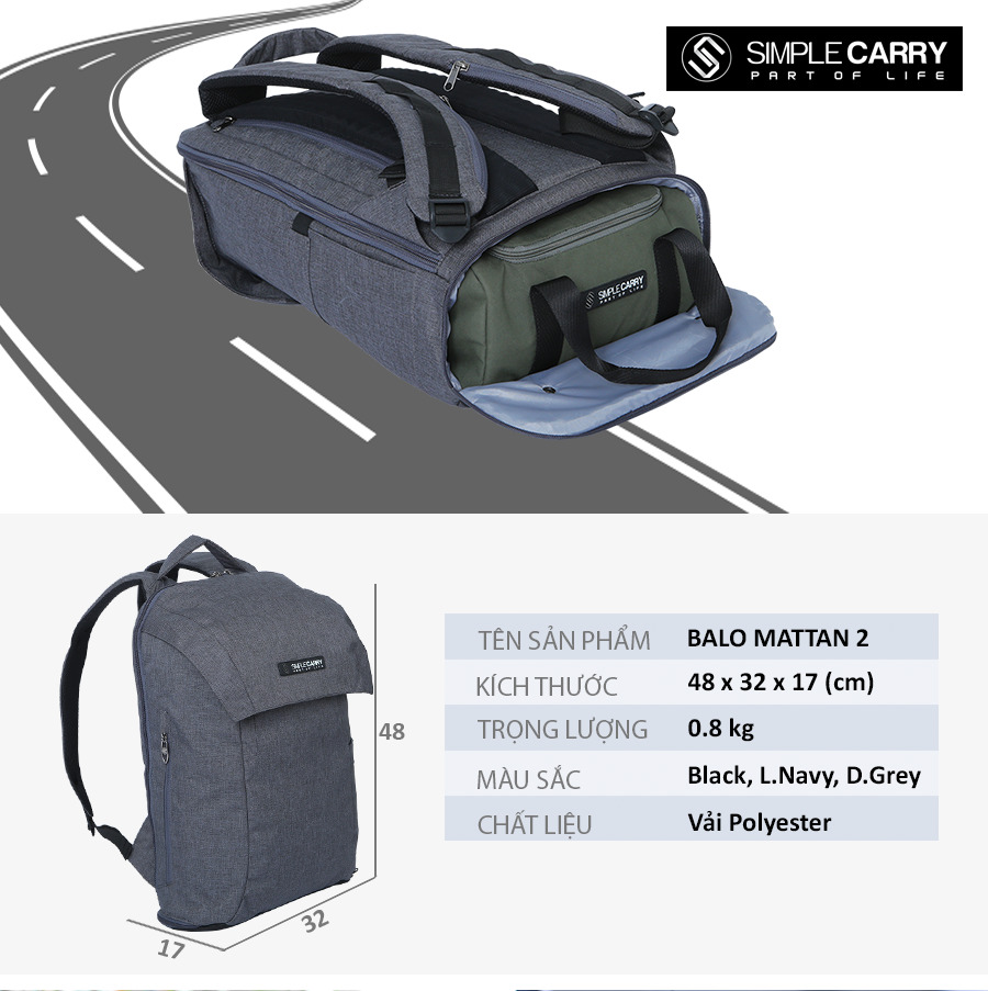 - Balo Simplecarry Mattan 2 thiết kế độc đáo, lạ mắt phù hợp cho sinh viên, dân văn phòng mang đi học, đi làm hay đi công tác, du lịch...