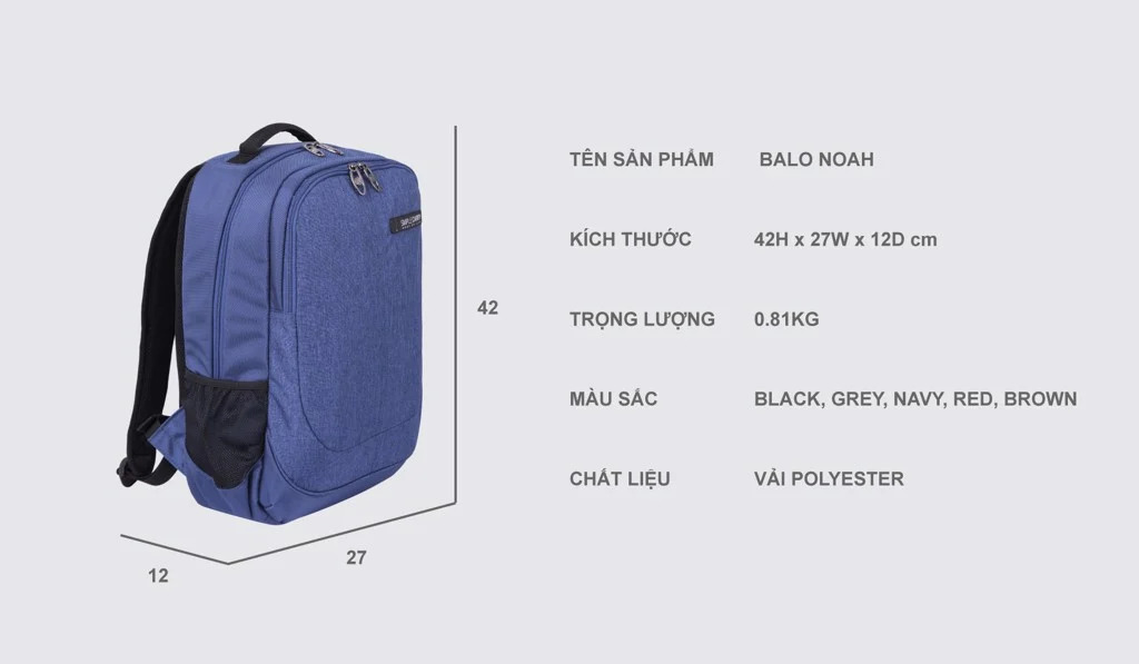 - Kích thước: 42 x 27 x 12 cm.
