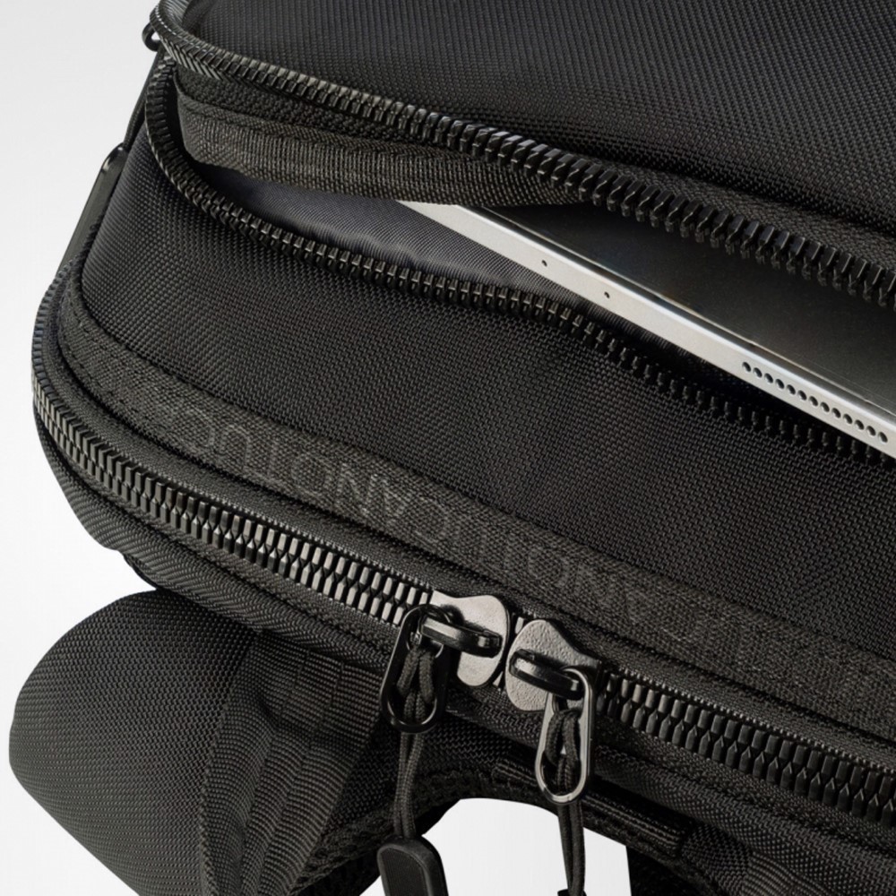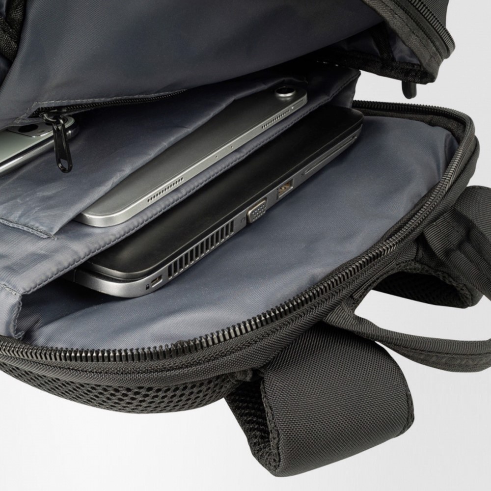 - Balo laptop Tucano Terra Gravity - AGS thiết kế gồm: 1 ngăn chính, 1 ngăn phụ ngoài và 1 ngăn ẩn ở mặt lưng. Ngăn chính có ngăn laptop và tablet được trang bị hệ thống chống sốc, chống trượt, balo an toàn dành cho thiết bị Macbook Pro 16” / laptop 15.6” và ipad 10'' trở xuống.