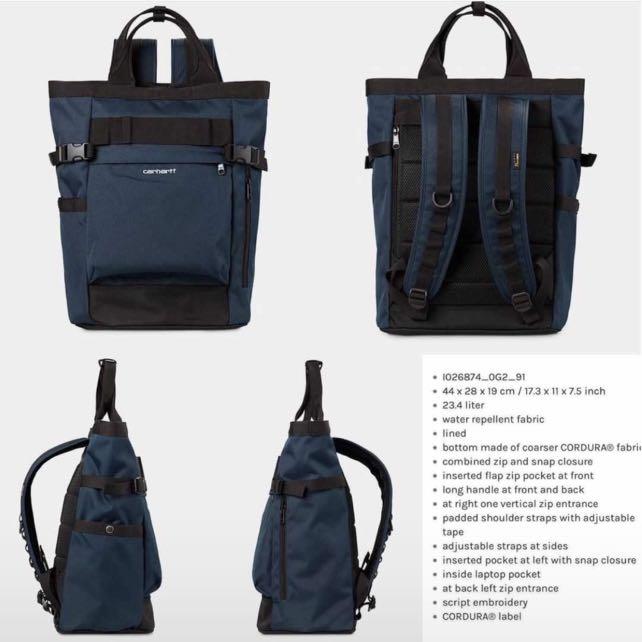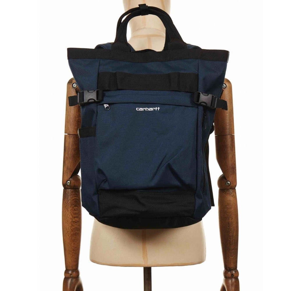 - Balo Carhartt Wip Payton Carrier thiết kế kiểu dáng như túi xách tay hoặc balo đeo vai. Nắp dây rút, nắp khóa bằng nút bấm tùy chọn trong sử dụng theo ý thích từng cá nhân.