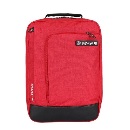 - Mặt trước có ngăn nhỏ với đầu khóa kéo, đính logo thương hiệu Simplecarry, phía dưới trang trí bằng simili cao cấp.