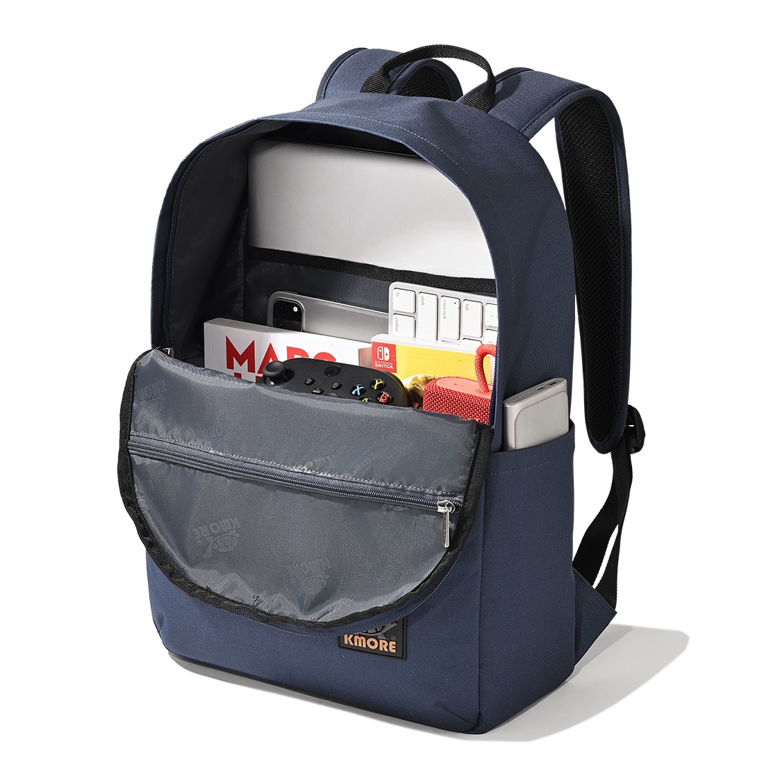 - Balo Kmore The Lennox có ngăn chính rộng rãi, bên trong balo có ngăn phân khu rõ ràng, giúp bạn dễ dàng sắp xếp và tìm kiếm các vật dụng. Ngoài ra, balo còn có một ngăn laptop riêng biệt đựng vừa laptop 15.6 inch cùng ngăn nhỏ khóa kéo đựng đồ cá nhân gọn gàng. Ngăn hông thích hợp đựng bình nước hoặc dù che mưa gấp nhỏ.
