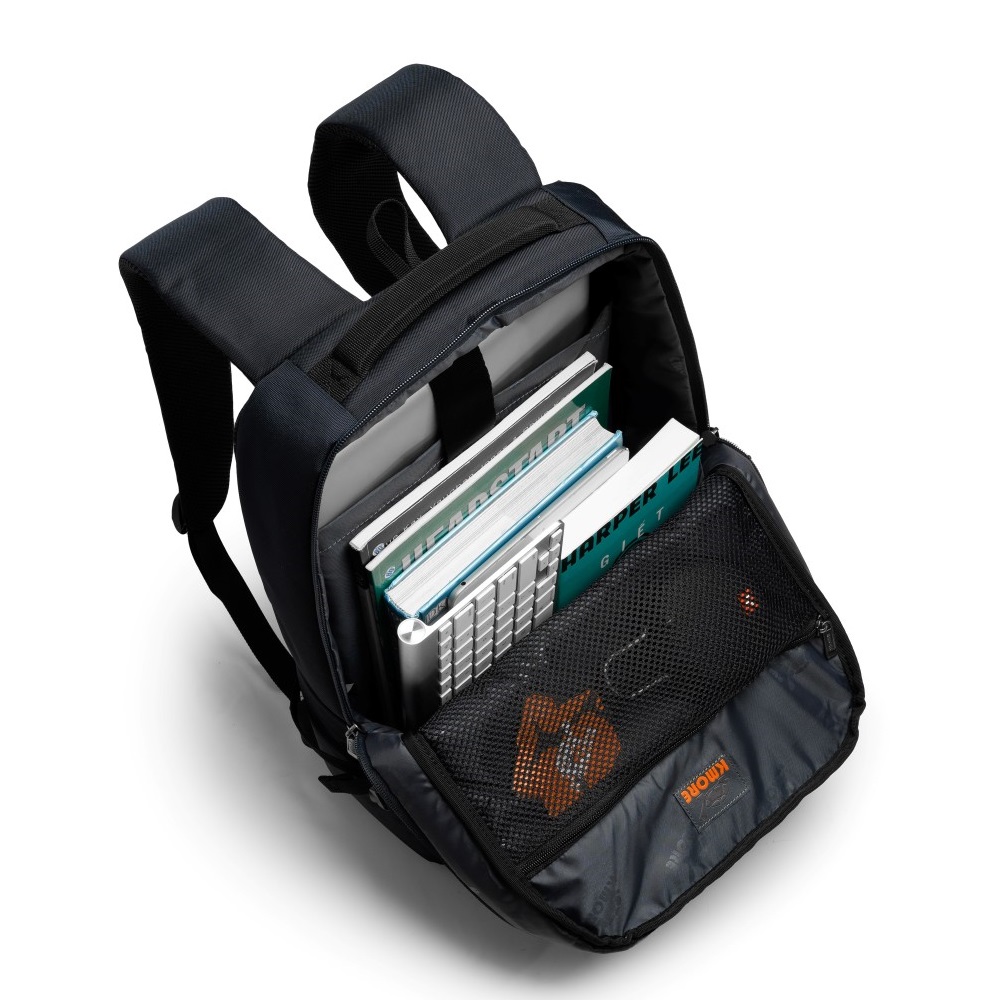 - Balo laptop Kmore The Leon thiết kế với 1 ngăn chính đựng laptop 15.6 inch, có diện tích rộng rãi đủ chỗ cho quần áo, sách vở, bên trong có thêm ngăn lưới nhỏ có khóa kéo giúp bạn để những vật dụng cá nhân đáp ứng nhu cầu để nhiều đồ dùng của bạn khi đi lại hay trong những chuyến đi du lịch.