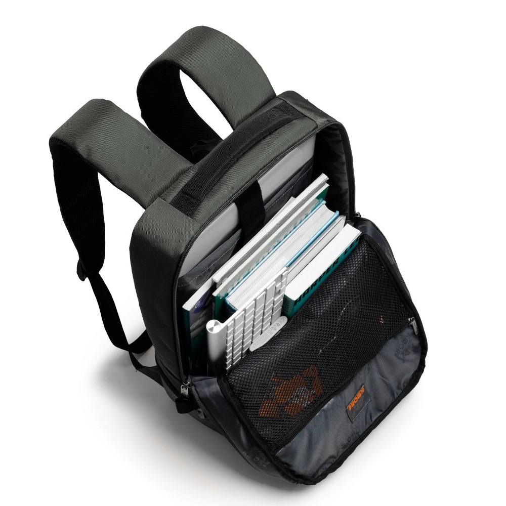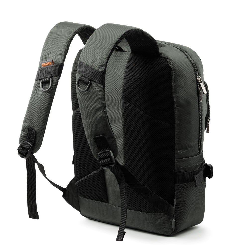 - Balo laptop Kmore The Leon thiết kế với 1 ngăn chính đựng laptop 15.6 inch, có diện tích rộng rãi đủ chỗ cho quần áo, sách vở, bên trong có thêm ngăn lưới nhỏ có khóa kéo giúp bạn để những vật dụng cá nhân đáp ứng nhu cầu để nhiều đồ dùng của bạn khi đi lại hay trong những chuyến đi du lịch.