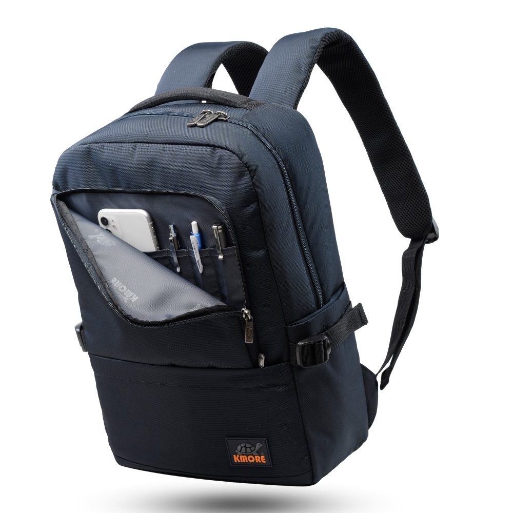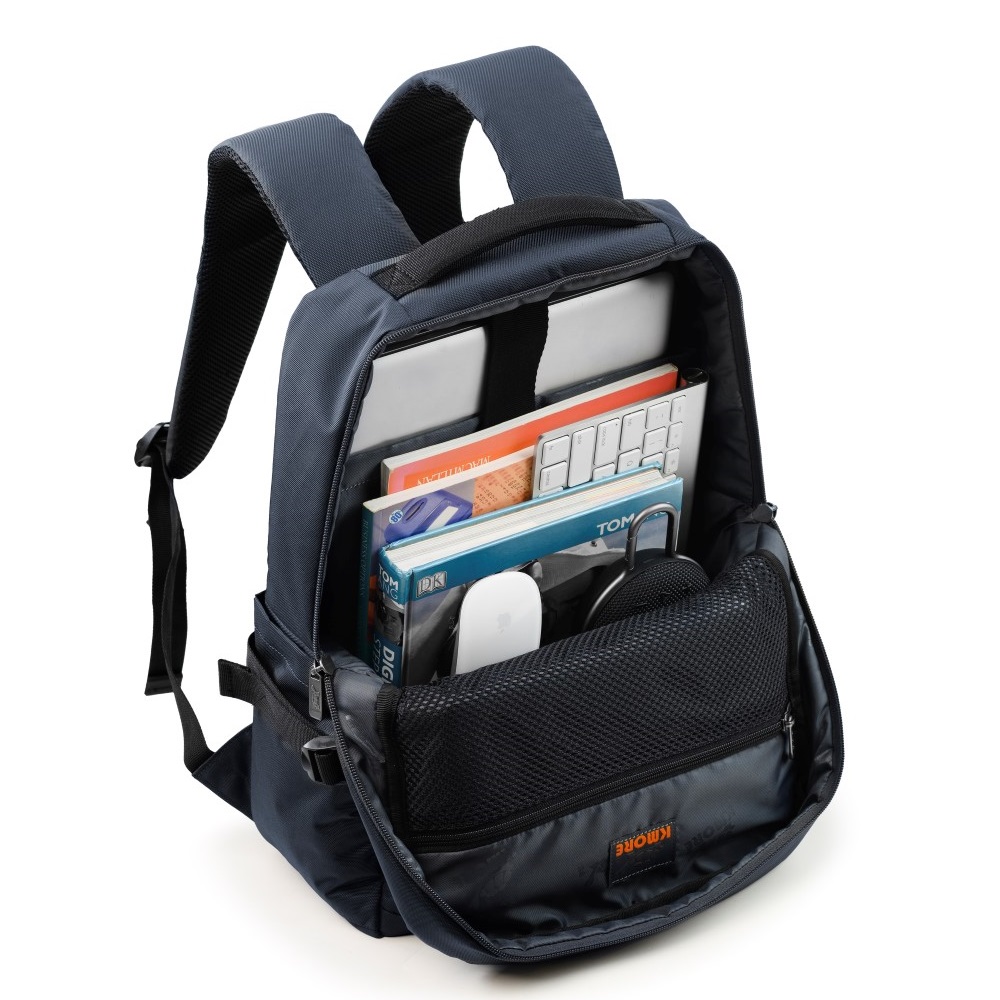 - Balo laptop Kmore The Parker gồm 1 ngăn chính rộng, ngăn laptop cho các dòng máy tính lớn đến 15.6” PC, 1 ngăn khoá kéo bên trong và 2 ngăn nhỏ đựng phụ kiện.