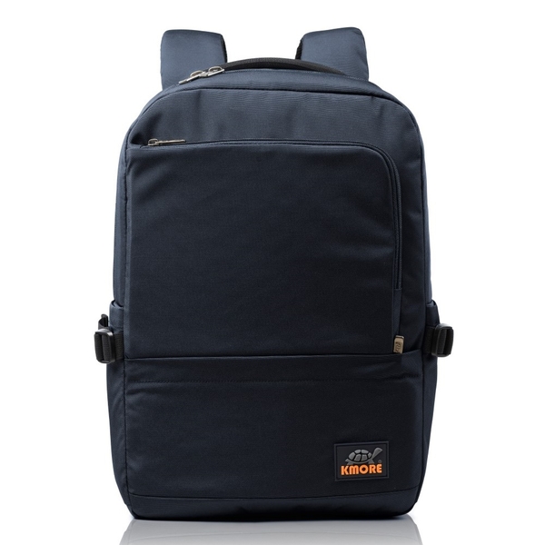 - Mặt trước balo đính logo PVC biểu tượng thương hiệu KMORE.