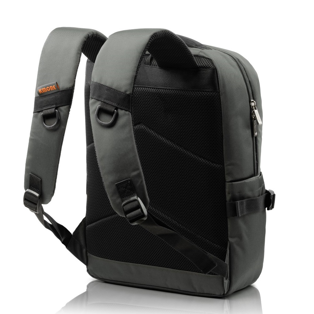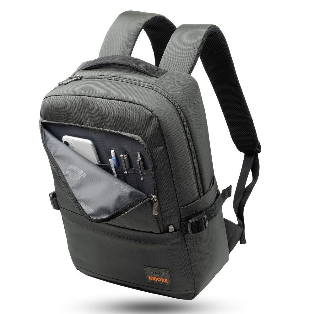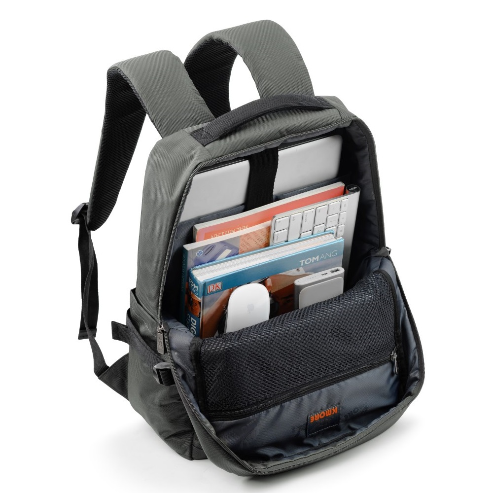 - Balo laptop Kmore The Parker gồm 1 ngăn chính rộng, ngăn laptop cho các dòng máy tính lớn đến 15.6” PC, 1 ngăn khoá kéo bên trong và 2 ngăn nhỏ đựng phụ kiện.
