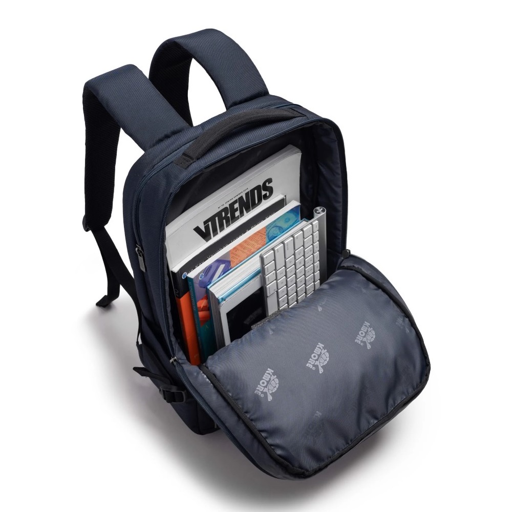 - Balo laptop Kmore The Wesley được thiết kế tinh tế với nhiều ngăn giúp bạn mang theo những hành trang cần thiết hàng ngày đến giảng đường hay công sở.