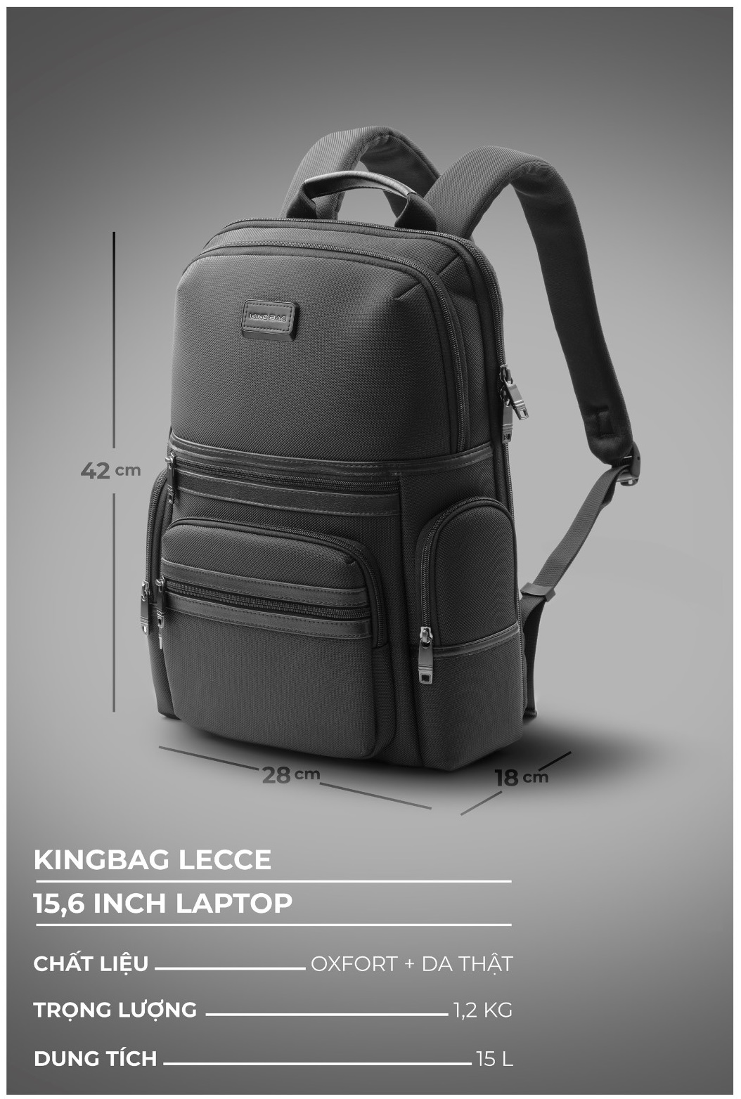 - Balo Kingbag Lecce là dòng balo laptop cao cấp với kiểu dáng sang trọng, thời trang mang phong cách Italy. Các ngăn được thiết kế khoa học tiện dụng phù hợp mang đi làm hay đi du lịch.