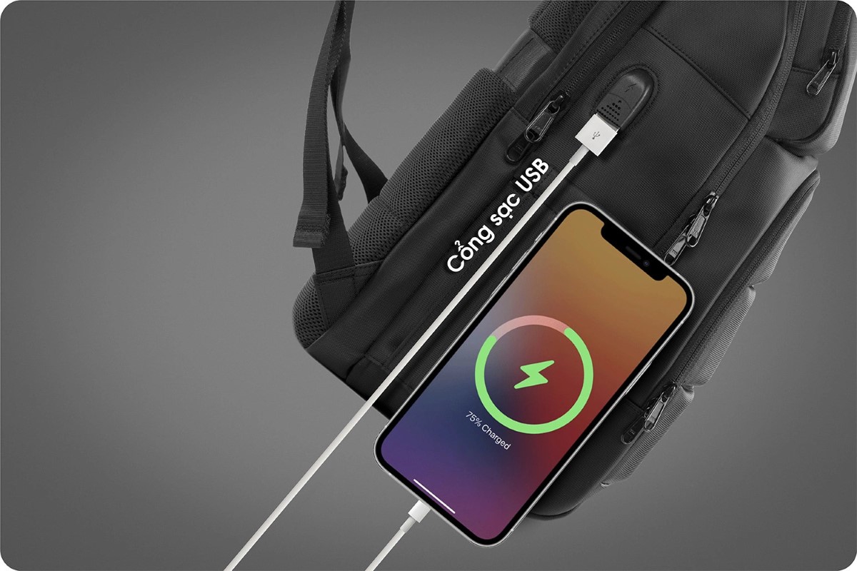 - Đặc biệt có cổng sạc USB bên hông balo.