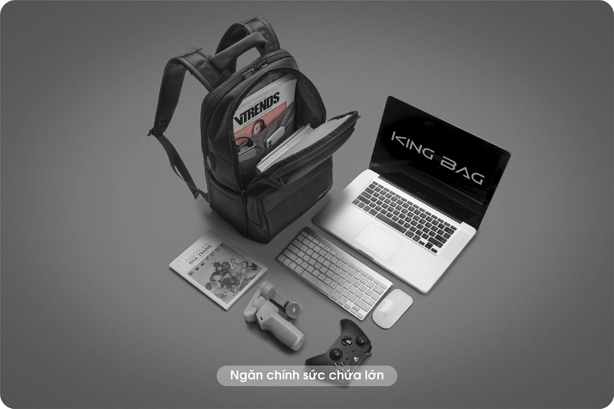 - Balo Kingbag Marcus gồm 1 ngăn chính rộng rãi có thể để được nhiều đồ, ngăn laptop 15.6 inch riêng biệt,