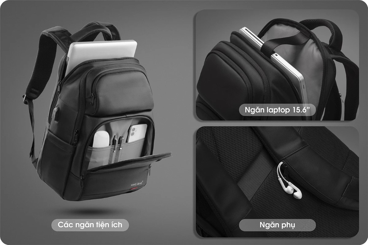 - Balo laptop Kingbag Marcus với kiểu dáng sang trọng, thời trang, các ngăn được thiết kế khoa học tiện dụng phù hợp mang đi làm hay đi du lịch.