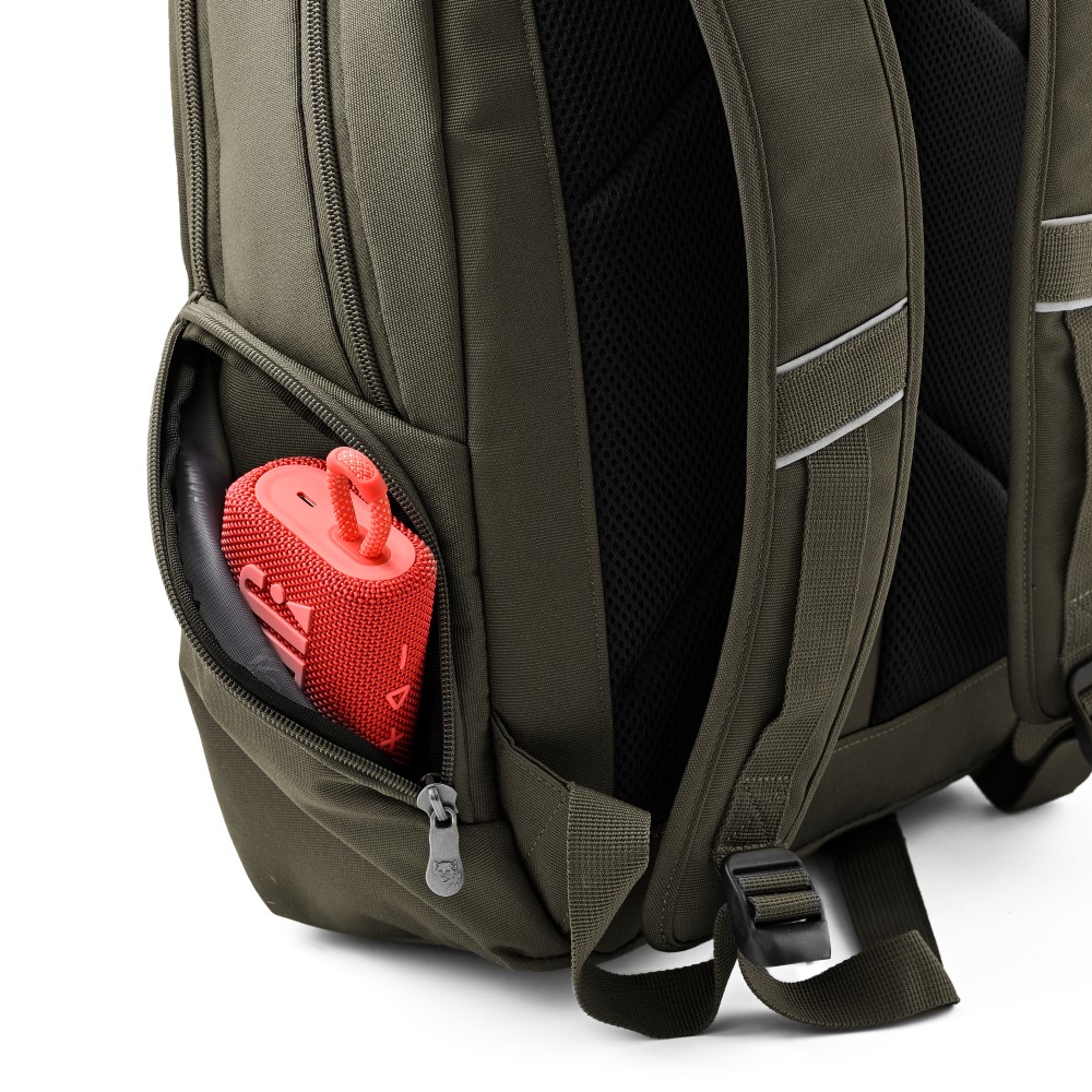 - Bên hông balo là ngăn dây kéo và ngăn chứa cho chai nước hoặc vật dụng cá nhân nhỏ gọn. Đồng thời cũng là điểm nhấn đặc biệt cho chiếc balo thêm ấn tượng.