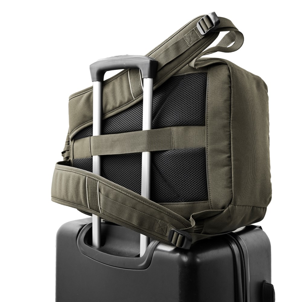- Mặt sau balo có một vách để gắn vào tay kéo va li, giúp cho những chuyến công tác của bạn trở lên đơn giản và gọn nhẹ hơn.
