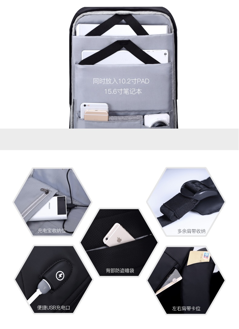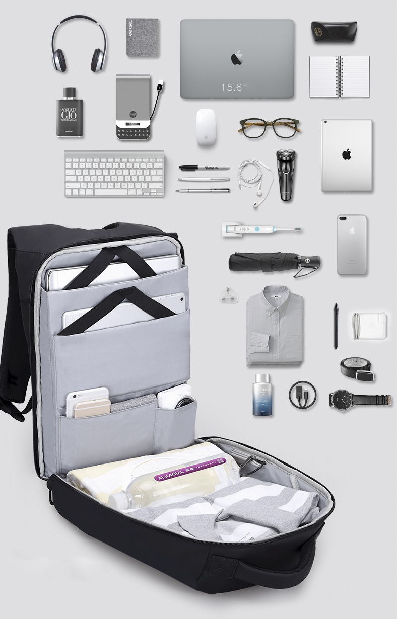 - Balo Reeyee gồm 1 ngăn chính lớn, bên trong có ngăn để laptop 15.6 inch, ngăn để ipad - tablet và các ngăn để phụ kiện, bút viết, sạc, điện thoại...