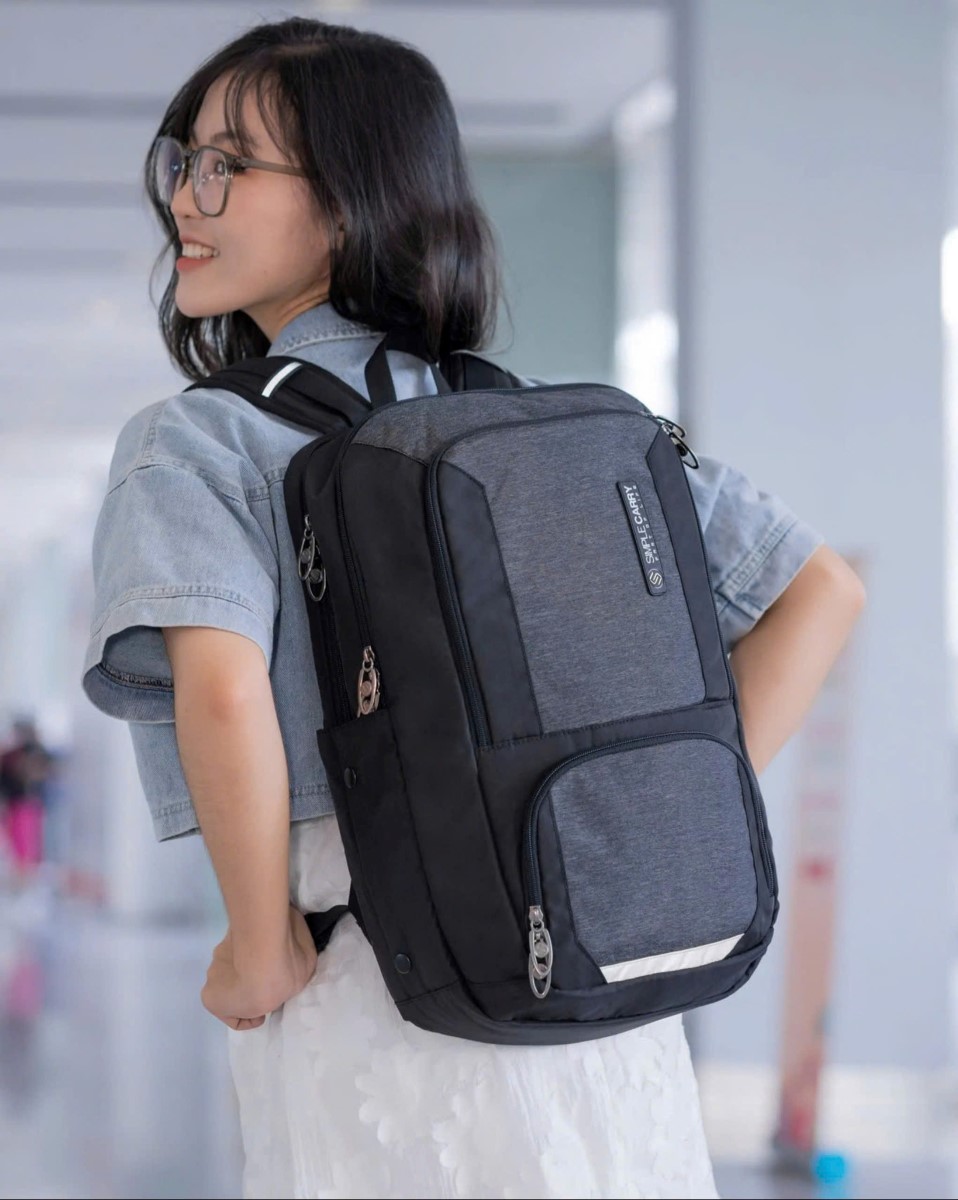 - Balo Simplecarry Credo gồm 2 ngăn chính và 2 ngăn phụ, có ngăn laptop 14 inch riêng biệt.