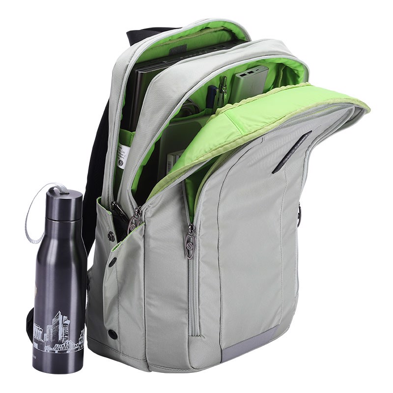 - Ngăn trong: có ngăn để bút viết, sạc, điện thoại... ngăn đựng laptop 15.6 inch với lớp PE chống sốc.
