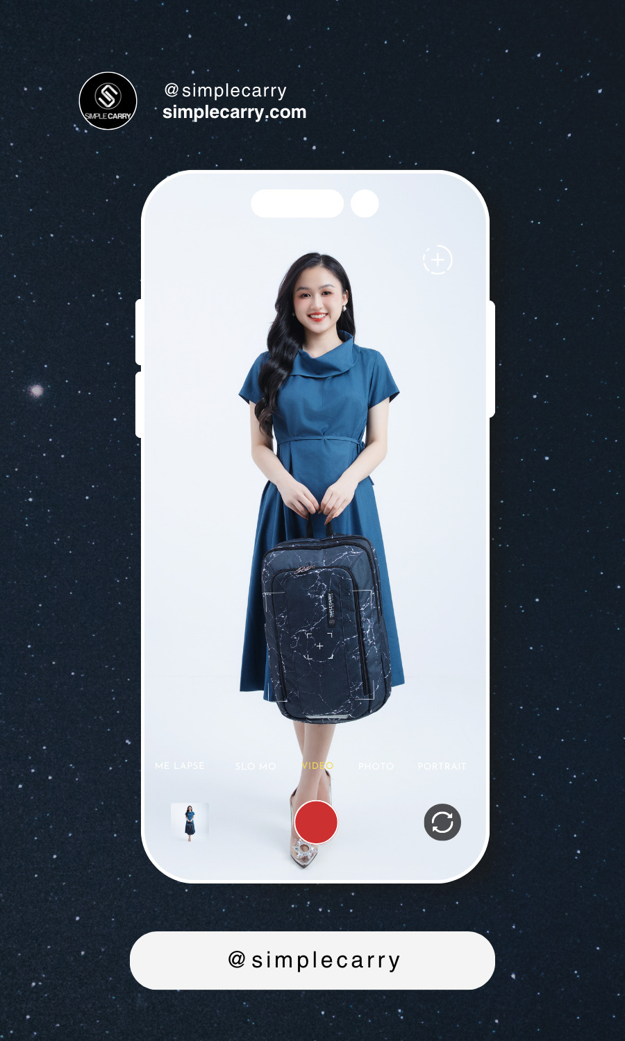- Mặt trước may đính logo thương hiệu Simplecarry bằng bản nhựa.