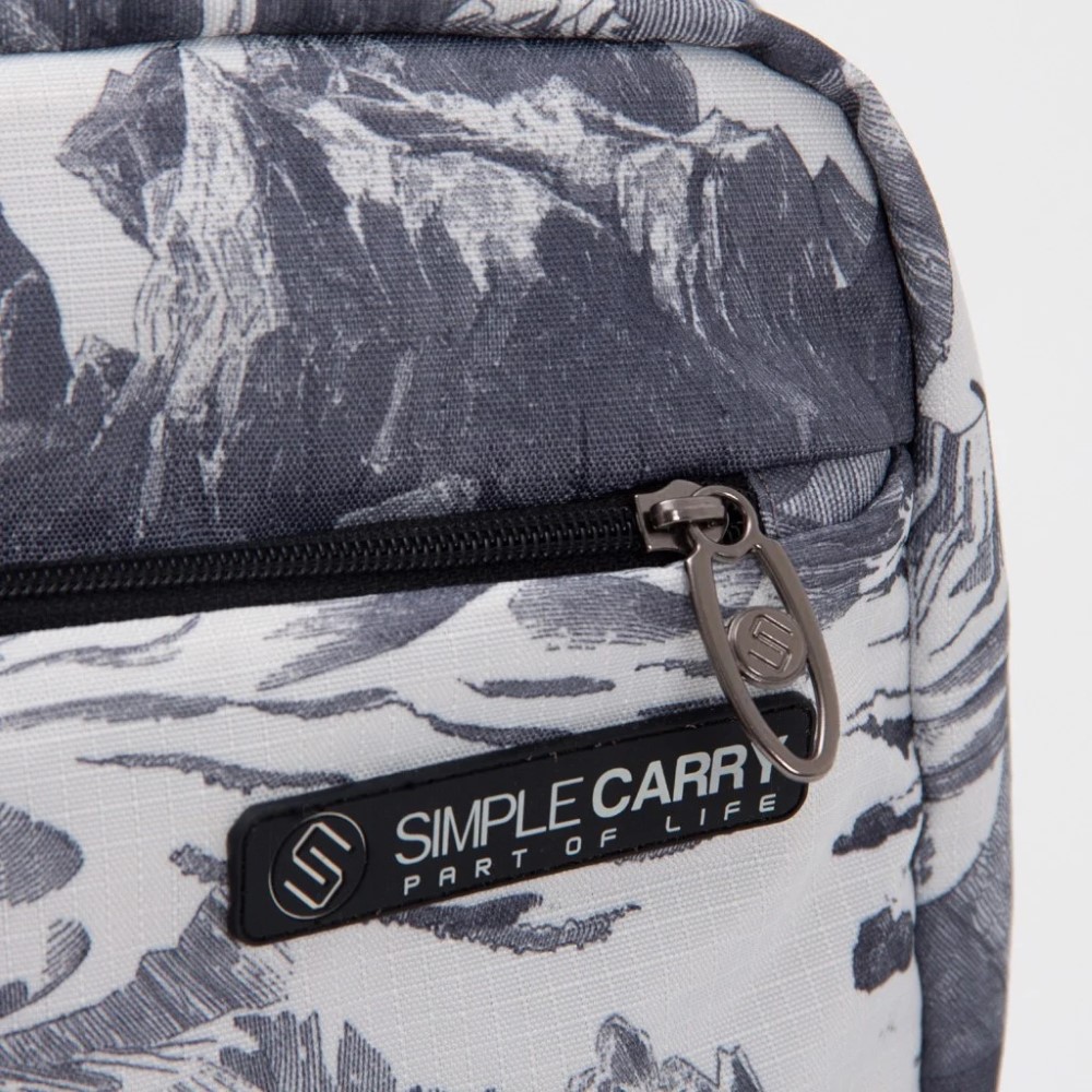 - Thân sau: Phần lưng có lớp lưới Air Mesh thoát hơi nhanh, in logo tròn của SimpleCarry.