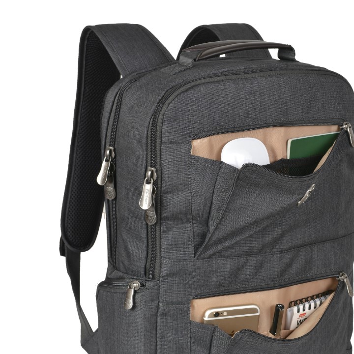 - Thiết kế 6 ngăn có dây kéo, Mikkor The Abraham đáp ứng đầy đủ các yêu cầu của người sử dụng. Mặt trước được phối với da PU mang lại sự sang trọng cho sản phẩm, ngăn laptop riêng biệt có thể đựng được laptop 15.6 có bàn phím phụ. Một ngăn chính lớn rộng rãi đủ để mang theo 1 góc tài liệu văn phòng hoặc đồ dùng trong 2-3 ngày công tác. 2 ngăn nhỏ phía trước đều có dây kéo và có thêm nhiều ngăn phụ nhỏ bên trong: giắt viết, name card, cáp sạc, tai nghe …. Hai ngăn bên hông với dây kéo kín để bạn có thể để các vật dụng nhỏ mà không sợ bị rớt ra ngoài. Khi mở dây kéo ra, bạn đã có ngay ngăn đựng bình nước