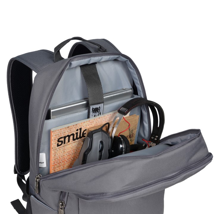 - Thân sau đệm foam trên nền lưới Airmesh thoáng nhiệt tạo sự êm ái và thoải mái khi đeo. Thân túi đệm foam PE chống sốc tốt bảo vệ máy tính và đồ dùng bên trong.