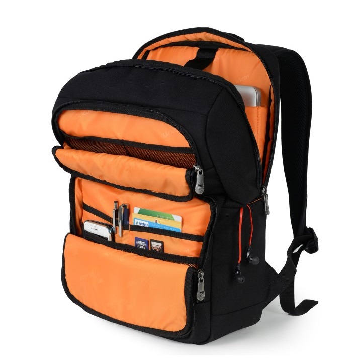 - Ngăn hộp trước với rất nhiều ngăn nhỏ đựng phụ kiện như Ipad, tai nghe, điện thoại, chìa khoá, xạc máy...bên ngoài tích hợp với 2 ngăn đựng bình nước.