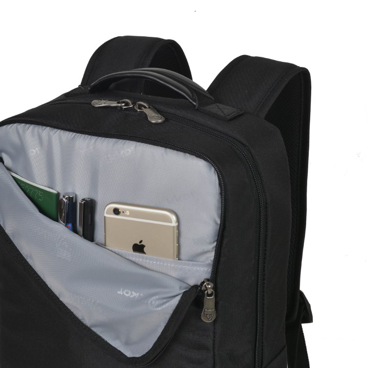 - Phía trước là một ngăn phụ với nhiều ngăn nhỏ được chia khoa học dễ dàng sắp xếp các vật dụng cá nhân nhỏ gọn: bút viết, namecard, điện thoại, usb...