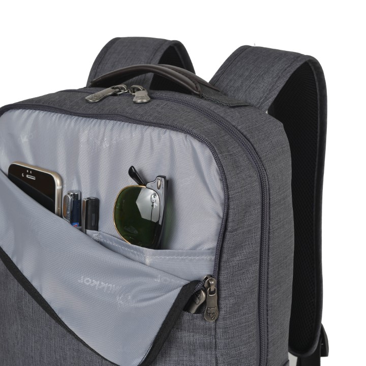 - Phía trước là một ngăn phụ với nhiều ngăn nhỏ được chia khoa học dễ dàng sắp xếp các vật dụng cá nhân nhỏ gọn: bút viết, namecard, điện thoại, usb...