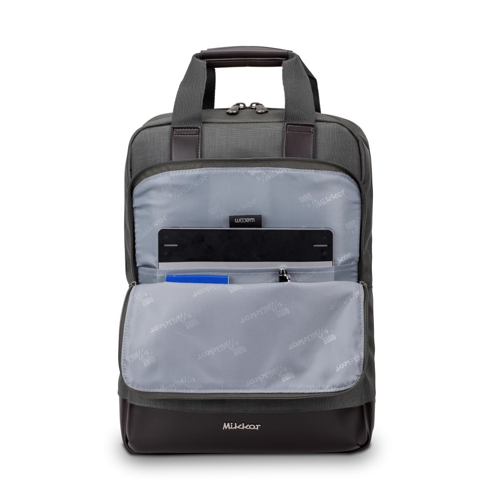 - Balo Mikkor thiết kế với form vuông gồm 1 ngăn chính bên trong có ngăn laptop 17 inch, ngăn để tài liệu và 1 ngăn lưới đựng phụ kiện.