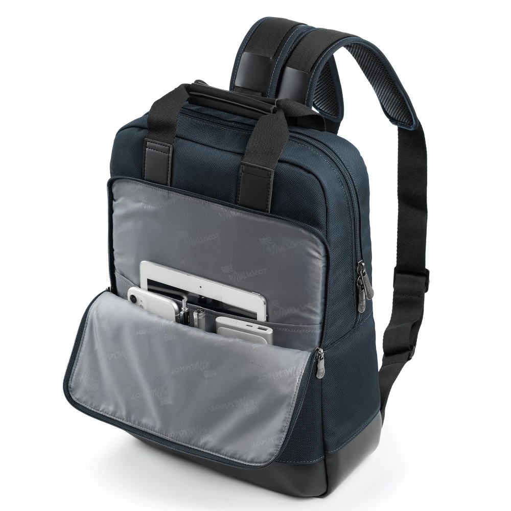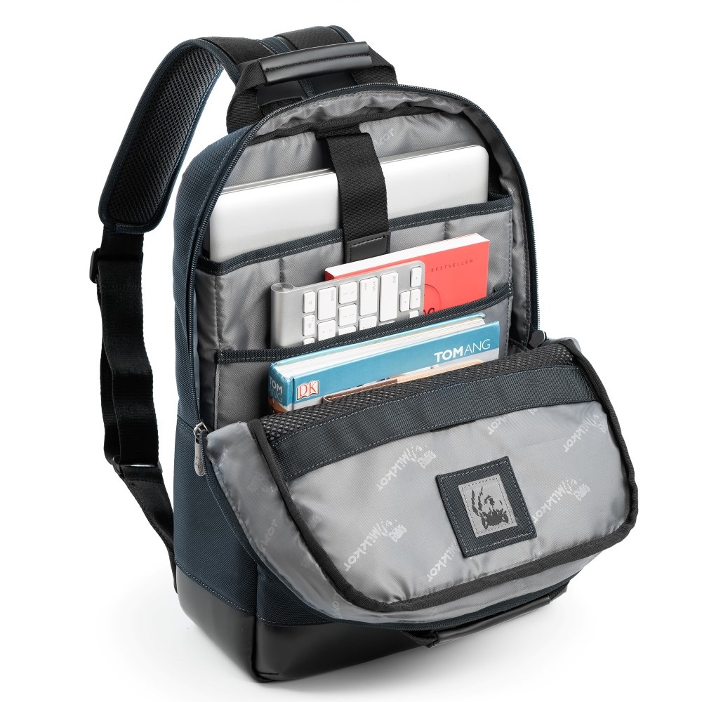 - Balo Mikkor thiết kế với form vuông gồm 1 ngăn chính bên trong có ngăn laptop 17 inch, ngăn để tài liệu và 1 ngăn lưới đựng phụ kiện.