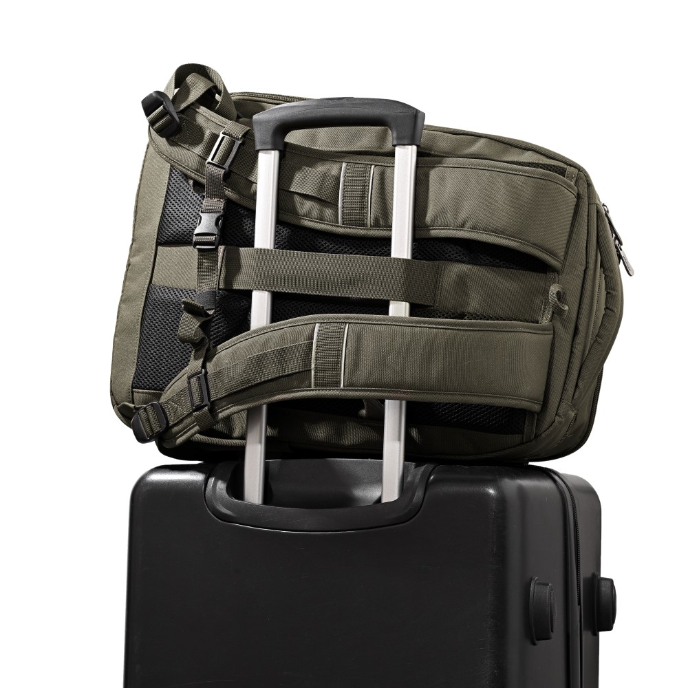 - Dây đai dọc phía sau, giúp tiện lợi hơn cho việc kết hợp cùng vali kéo.