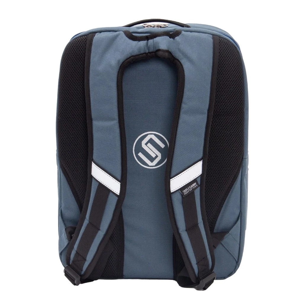 - Thân sau: Phần lưng có lớp lưới Air Mesh thoát hơi nhanh, in logo tròn của Simplecarry.