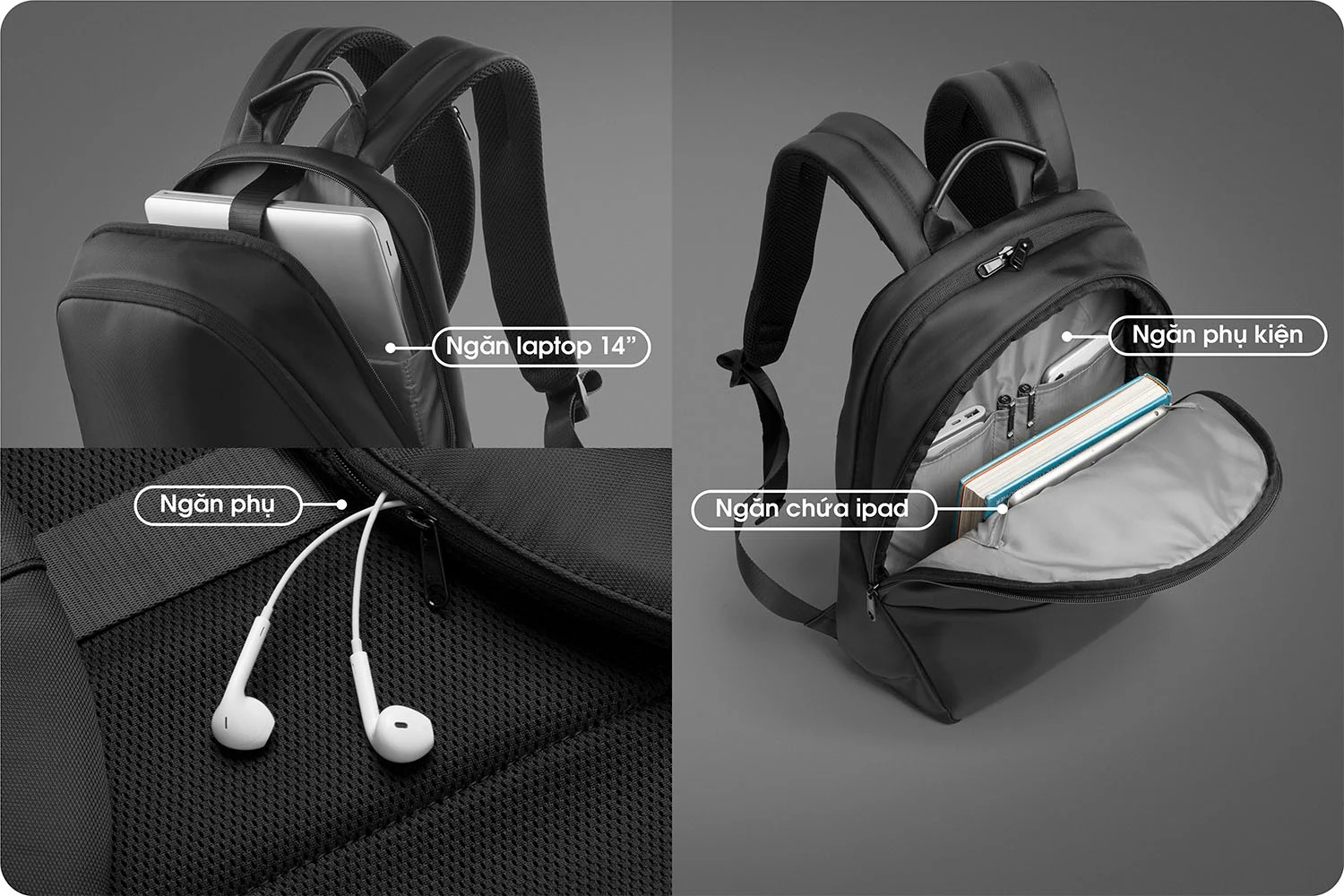 - Balo Kingbag gồm 1 ngăn chính để laptop 14 inch riêng biệt và 1 ngăn phụ phía trước có ngăn để máy tính bảng.