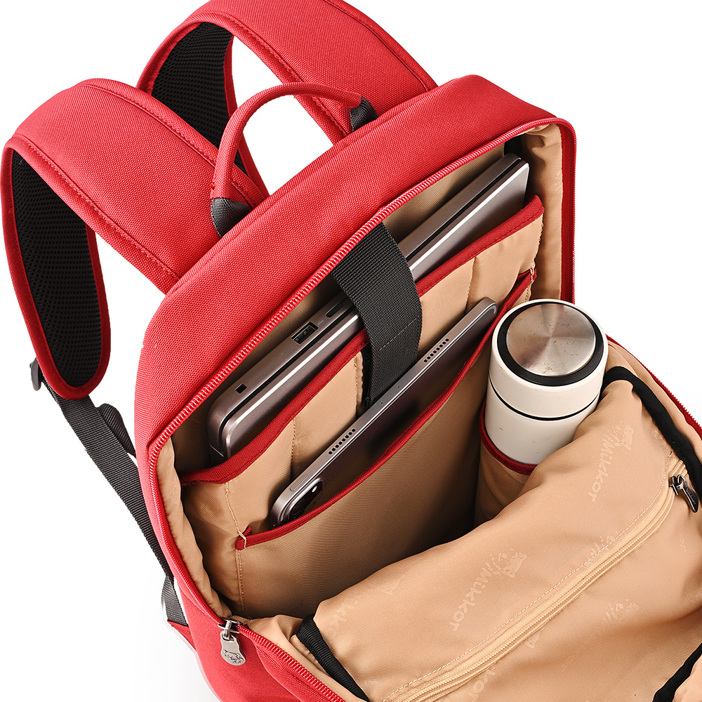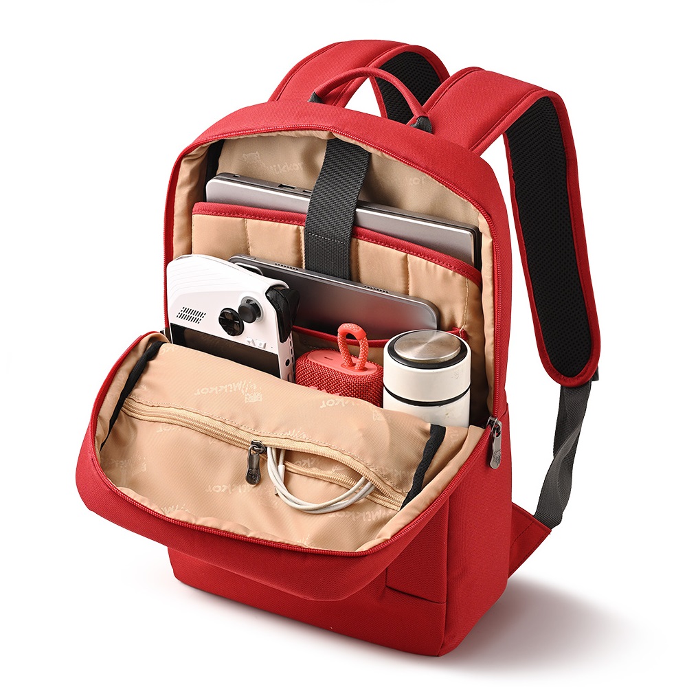 - Ngăn chính gồm ngăn chống sốc phù hợp cho các dòng laptop 15 inch, ngăn để Ipad và ngăn dây kéo nhỏ phía trước để các vật dụng như bóp ví, điện thoại,…không gian còn lại để sách vở hoặc tài liệu cần thiết cho một ngày làm việc của bạn. Ngăn bình nước được tích hợp bên trong, thuận tiện hơn trong quá trình di chuyển.